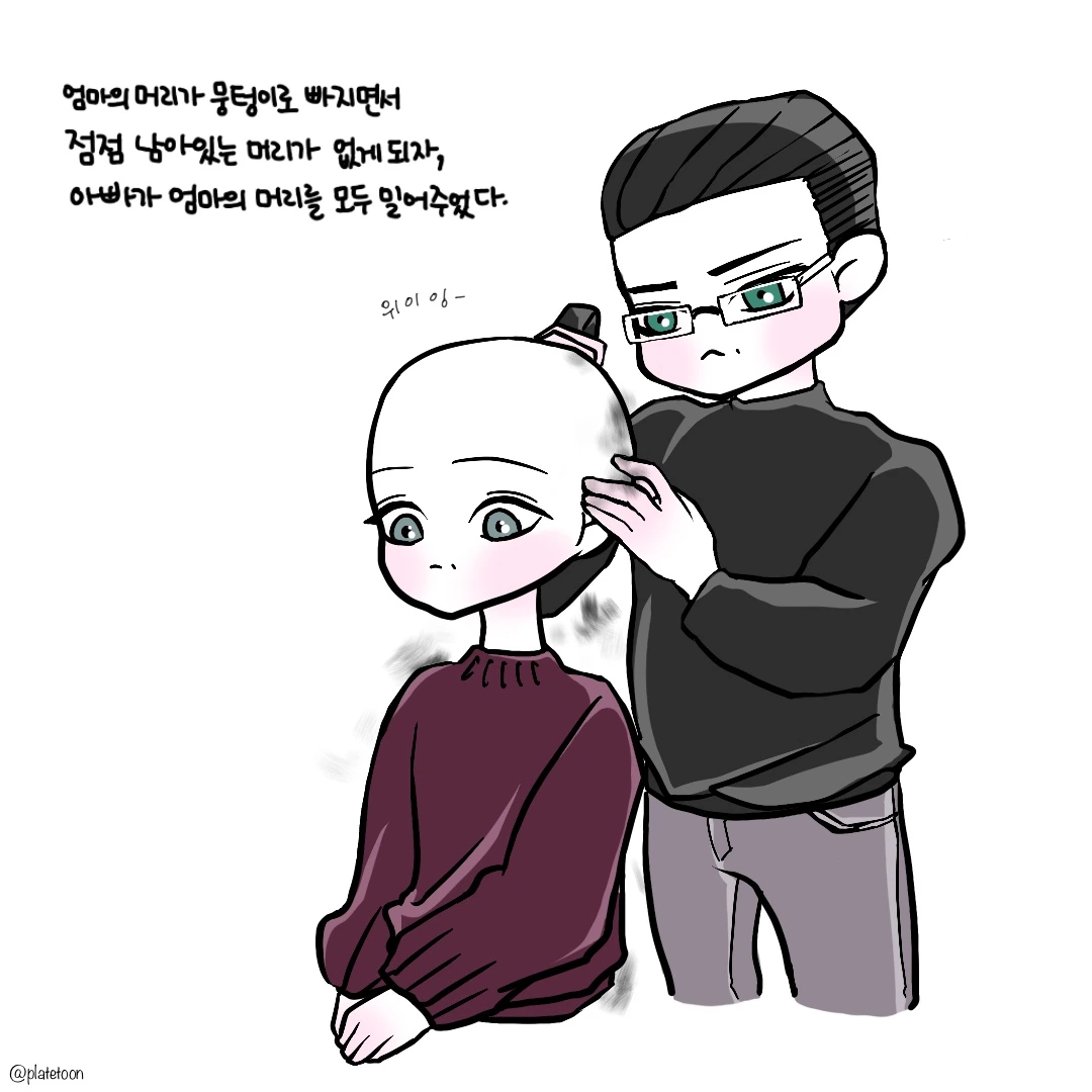 가끔씩 동생이랑 이야기하다 보면 자연스럽게 머리카락 이야기가 나오게 되는데 그때마다 씁쓸한 엄마 표정을 발견하게 되거든요. 아무리 치료가 끝나면 다시 자란다고 한다지만, 그냥 앞머리 조금만 잘못 잘라도 기분이 잡치는 우리인데, 고데기 조금만 컬 잘못돼도 하루 종일 신경이 쓰이는 우리인데.