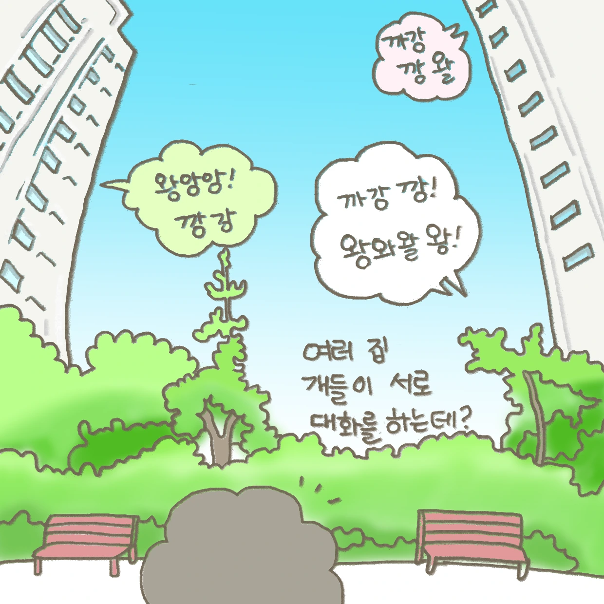 심지어 다른 집 강아지들과 대화도 나누네요.