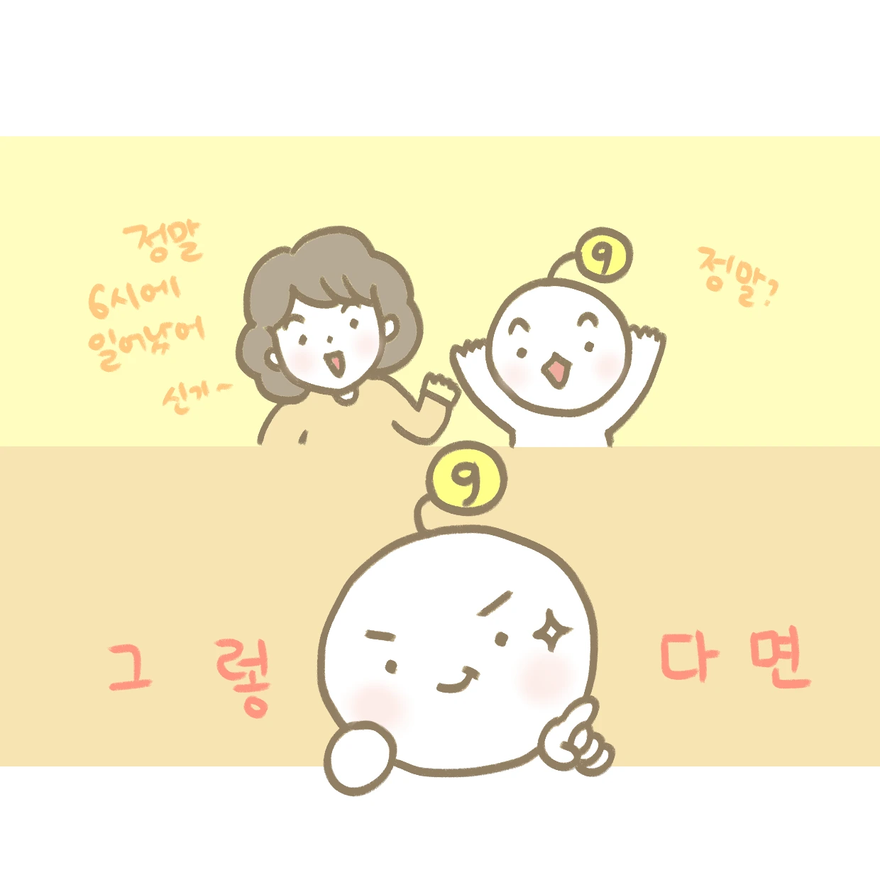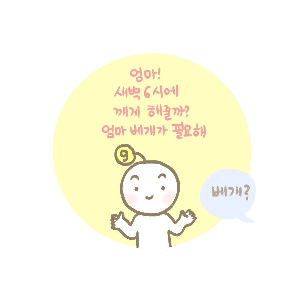 어느 날 아이가 베개로 마법의 알람시계를 맞춰준다고 해서