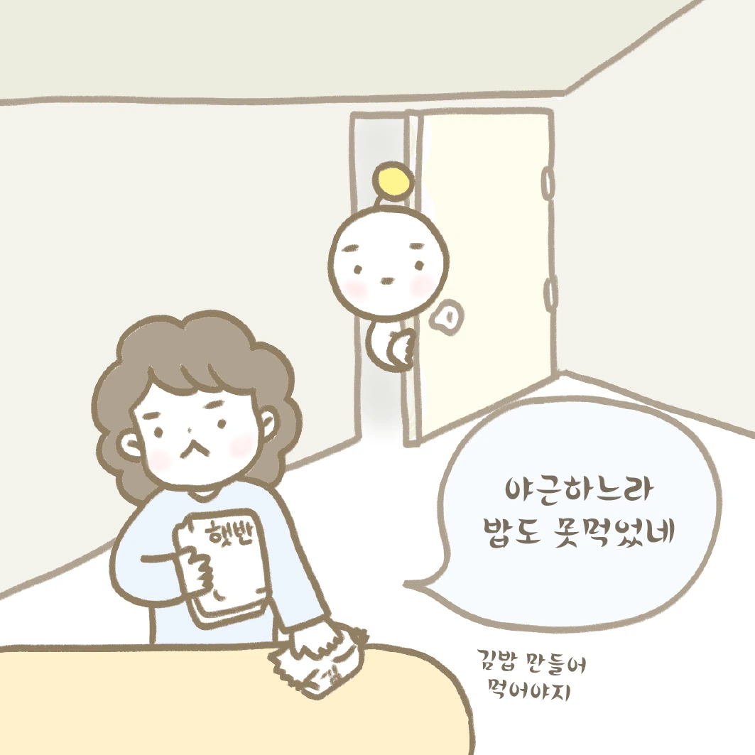 늦게 집에 들어와 생각해 보니 밥도 못 먹었더라고요.