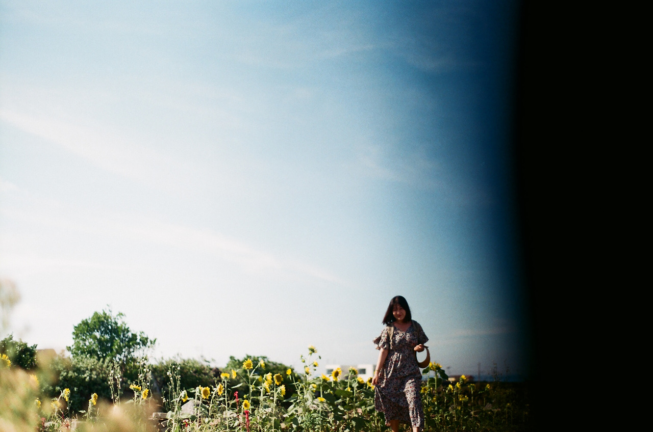 한 번 둘러봤던 곳이라 그런지, 어제는 잘 보이지 않던 사진 포인트들이 보이기 시작했다. 어제는 자동차에 가려있던 해바라기 밭과, 소품들을 발견했다. 부끄러워 찍지 않았던 포토존 앞에서도 연신 뛰어다니며 셀프 카메라를 찍어댔다. 비록 스트랩에 가리긴 했지만, 썩 맘에 드는 사진들을 만났다.