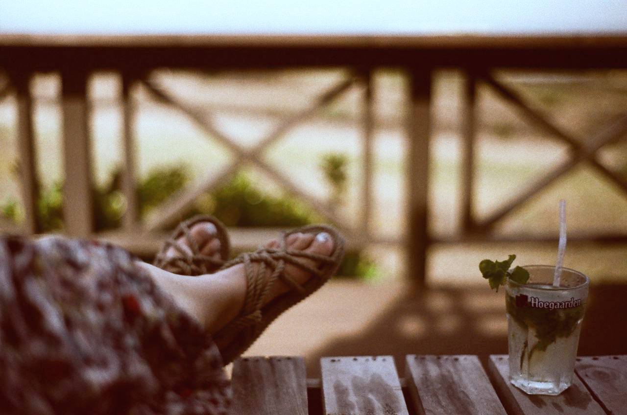 실컷 촬영하다, 목이 마르면 카페로 들어와 알쓰(알코올 쓰레기) 주제에 알코올이 들어간 모히또를 시켜 카페에 있던 책을 읽으며 홀짝거렸다. 땀이 식으면 카페 밖 테라스에 작은 데크 위에서 하염없이 멀리 보이는 바다를 보며 쉬었다. 아주 조용하고, 한적했다. 끈적한 섬의 바람마저도 기분 좋았다.