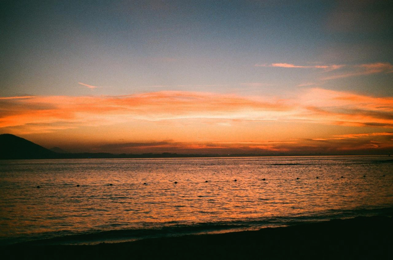 헛웃음이 날 정도로 멋졌던 그날의 하늘은, 어떤 문장으로 정의할 수 없을 정도로 압도적인 감동을 주었다. 분명 구름이 풍성하게 하늘에 자리 잡고 있는데, 별이 잘 보이는 맑은 하늘에 초승달이 반짝였다. 현실성 없는 하늘은 초단위로 얼굴을 바꾸며 움직이기 바빴다. 눈을 감아도 보이는 하늘의 따뜻하고 붉은빛의 잔영과 상냥한 해질녘의 바닷바람이 나를 지나갔다. 끊임없이 펼쳐진 하늘을 덮고 누워 하늘과 함께 붉게 물들다 서서히 잠겼던 그때를 여전히 잊을 수가 없다.