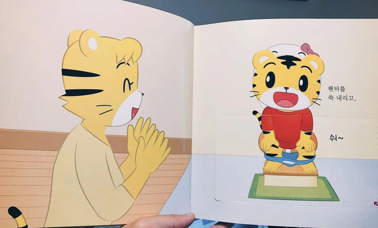 25개월 부터며 팬티를 입을 수 있겠구나, 생각해 미리 아이 팬티를 사놓고 빨아두었건만, 아이는 팬티에 도통 관심을 보이지 않았다. 게다가 유아 변기에 소변을 보는 '놀이'에 싫증이 났는지 이상하게 변기에 앉는 횟수도 차츰 줄어들었다. 일부러 외면하는 것 같기도 했다. 월령 프로그램 호비랑 나랑 26개 월편에는 호비가 팬티를 갈아입고 좋아하는 내용이 있어 함께 읽었고, 그때마다 채유도 가볍고 부드러운 팬티가 있다고 넌지시 얘기해줬지만 아이는 시큰둥할 뿐이었다.
