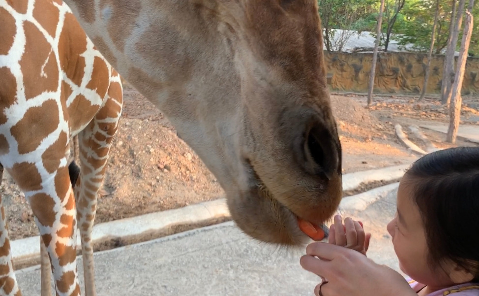 아이는 양 손에 바나나를 쥐고 연신 봄봄, 봄봄 하고 바쁘게 외친다. 코가 손인 코끼리답게 코끝에 바나나를 놓으면 입으로 가져가서 먹지만, 봄봄, 하고 외치면 코끼리가 코를 하늘 위로 쳐들고 입을 쫙 벌려 입에 직접 먹이를 줄 수가 있기 때문이다. 운이 좋으면(?) 코끼리 혓바닥의 감촉까지 느낄 수 있다. 아이는 코끼리 먹이 주는 시간을 가장 즐거워했다.