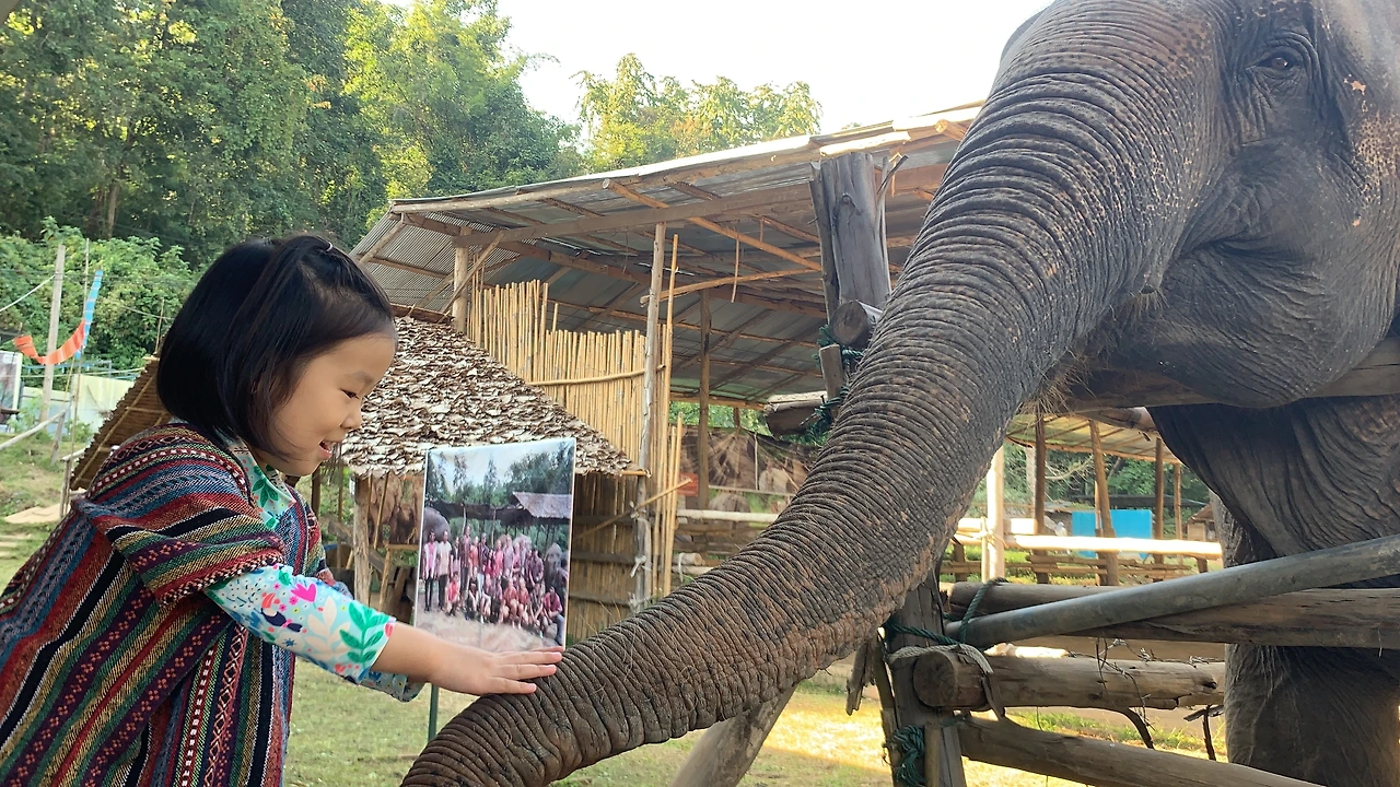 이 곳에서 코끼리에게 직접 먹이를 주고, 코끼리를 가까이서 만져볼 수도 있으며, 코끼리와 함께 강물에서 수영도 할 수 있다고 설명해주니 아이의 눈이 반짝반짝 빛이 났다. 싱가포르, 캐나다, 호주, 홍콩, 브라질 등 다양한 나라에서 온 참가자들이 모두 모였다. 빙 둘러앉은 후 자기소개를 하는 시간도 가졌는데, 자기 차례가 오자 야무지게 자신을 소개하는 채유. 예상치 못한 35개월의 당차고 깜찍한 행동에 다들 사랑스러운 웃음을 터뜨린다.