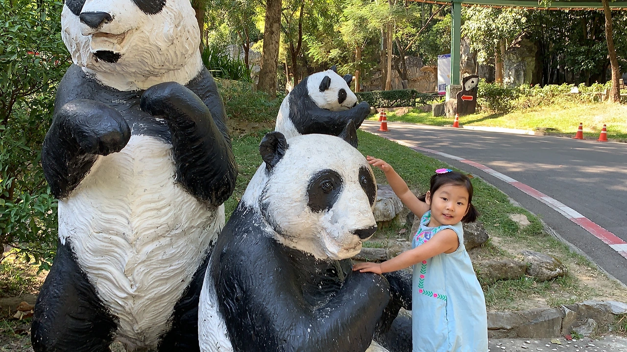 가기 전에 강태식 소설가의 '굿바이 동물원'을 읽은 탓일까. 앉아서 대나무를 우적우적 씹어먹는 판다가 꼭 판다의 탈을 쓴 사람같이 보였다. 1인당 100밧을 더 내야 팬터를 볼 수 있었는데, 마침 우리가 들어갔을 때 대나무 먹방이 한창이었다. 딱딱한 껍질은 이빨로 벗겨내고 안에 부드러운 속살만 먹어서 판다 배 위로 대나무 껍질들이 수두룩 했다. 그 모습을 유심히 본 아이는 뭐 먹을 때마다 입으로 껍질을 까면서 "나는 판다야"라고 한다.