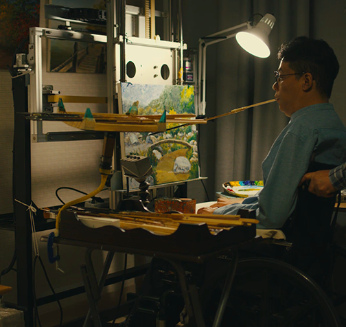 "손이 없어서 입으로 그리는 화가도 있고, 발가락에 펜을 잡고 그리는 화가도 있어."