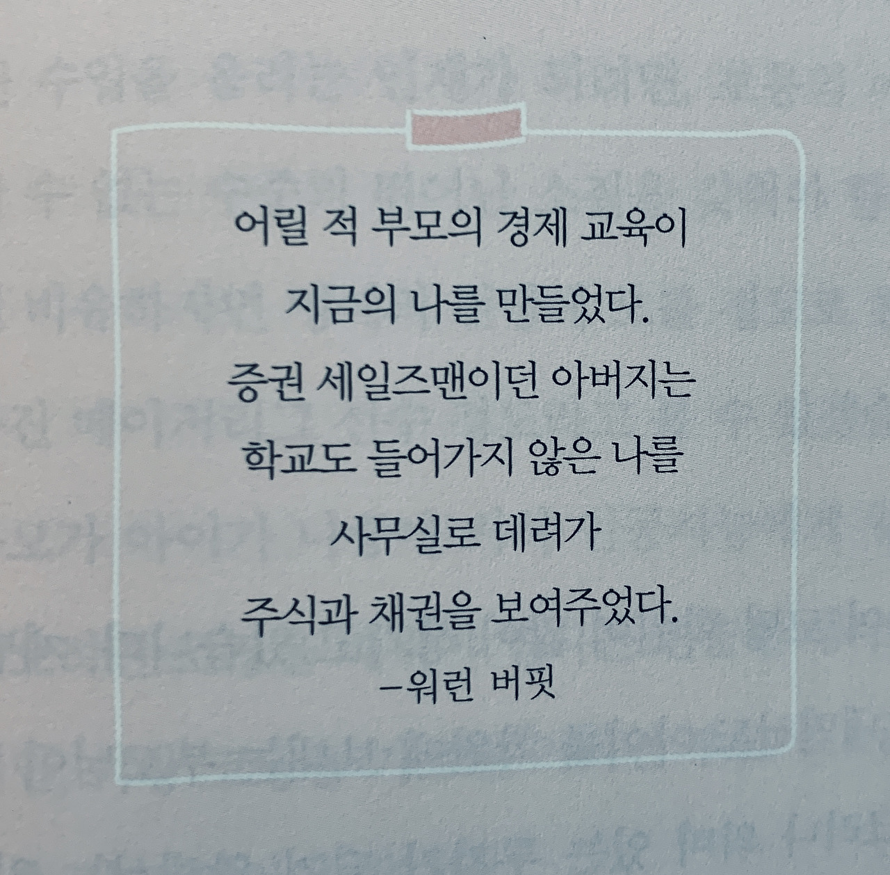 이 책에서도 아이가 스스로 돈을 모아 작은 투자를 직접 해보는 것은 좋은 경험이 될 수 있다고 말한다. 저금리 시대에 낮은 예금에 돈을 묶어두기보다 투자를 하는 편이 자산을 늘릴 가능성이 크고, 장기적인 투자를 통해 돈의 흐름을 볼 수 있는 능력을 기를 수 있기 때문이다.