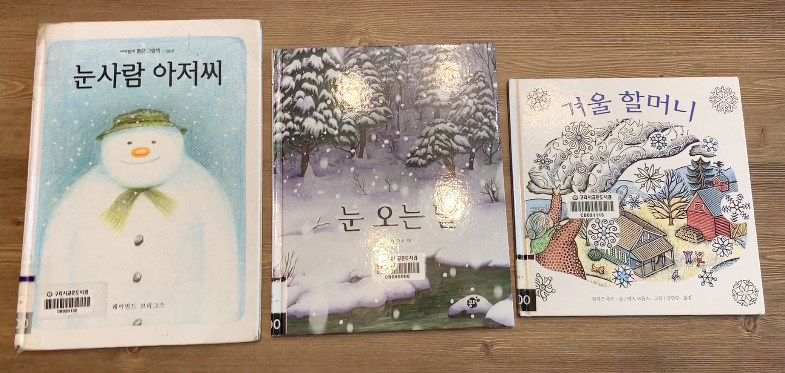 다 씻은 후에는 도서관에서 빌려온 겨울 그림책을 읽었어요.