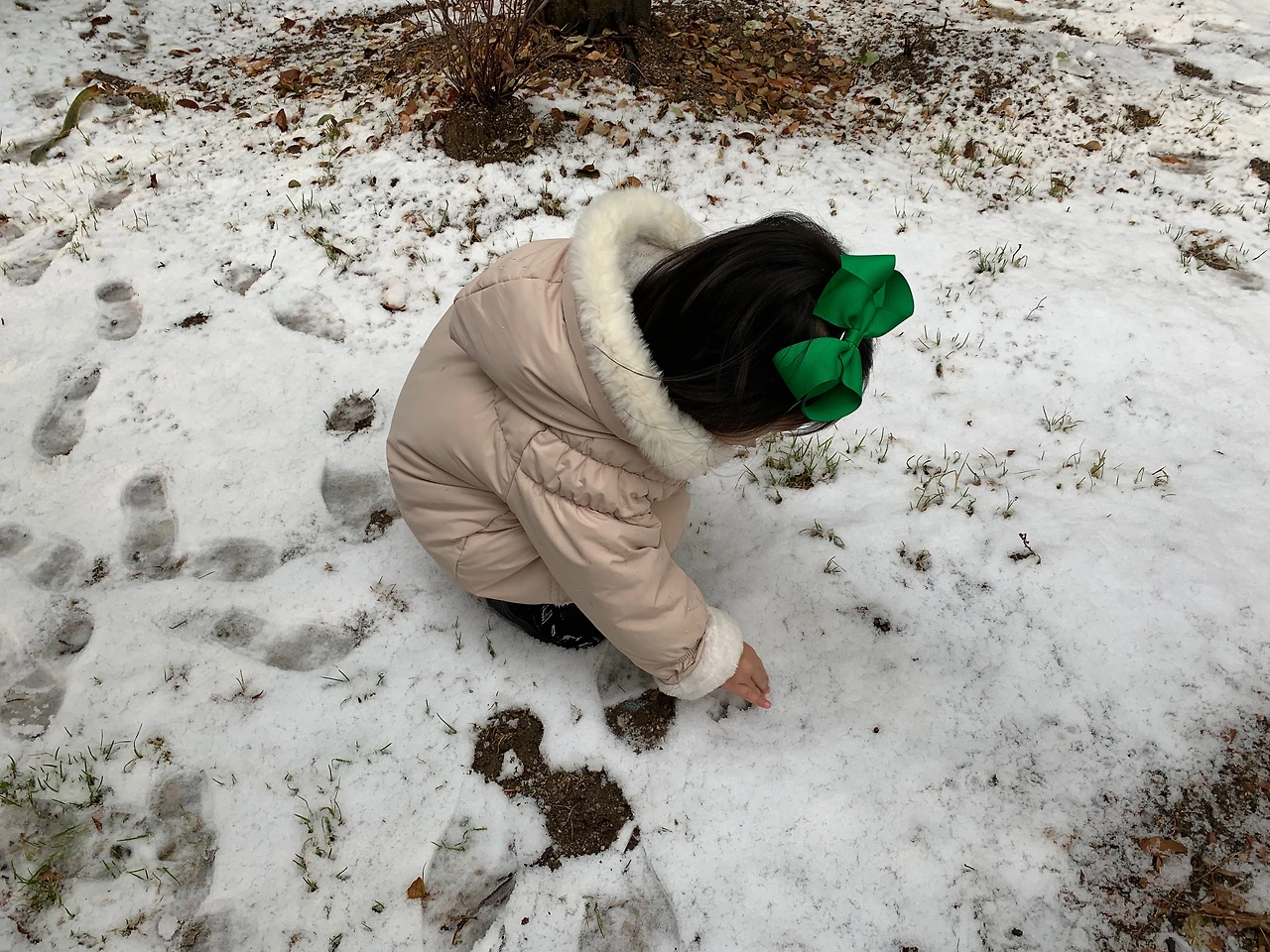 짧은 길이 아쉬운 눈치라, 이따 오후에 엄마랑 눈놀이 하자. 했어요.