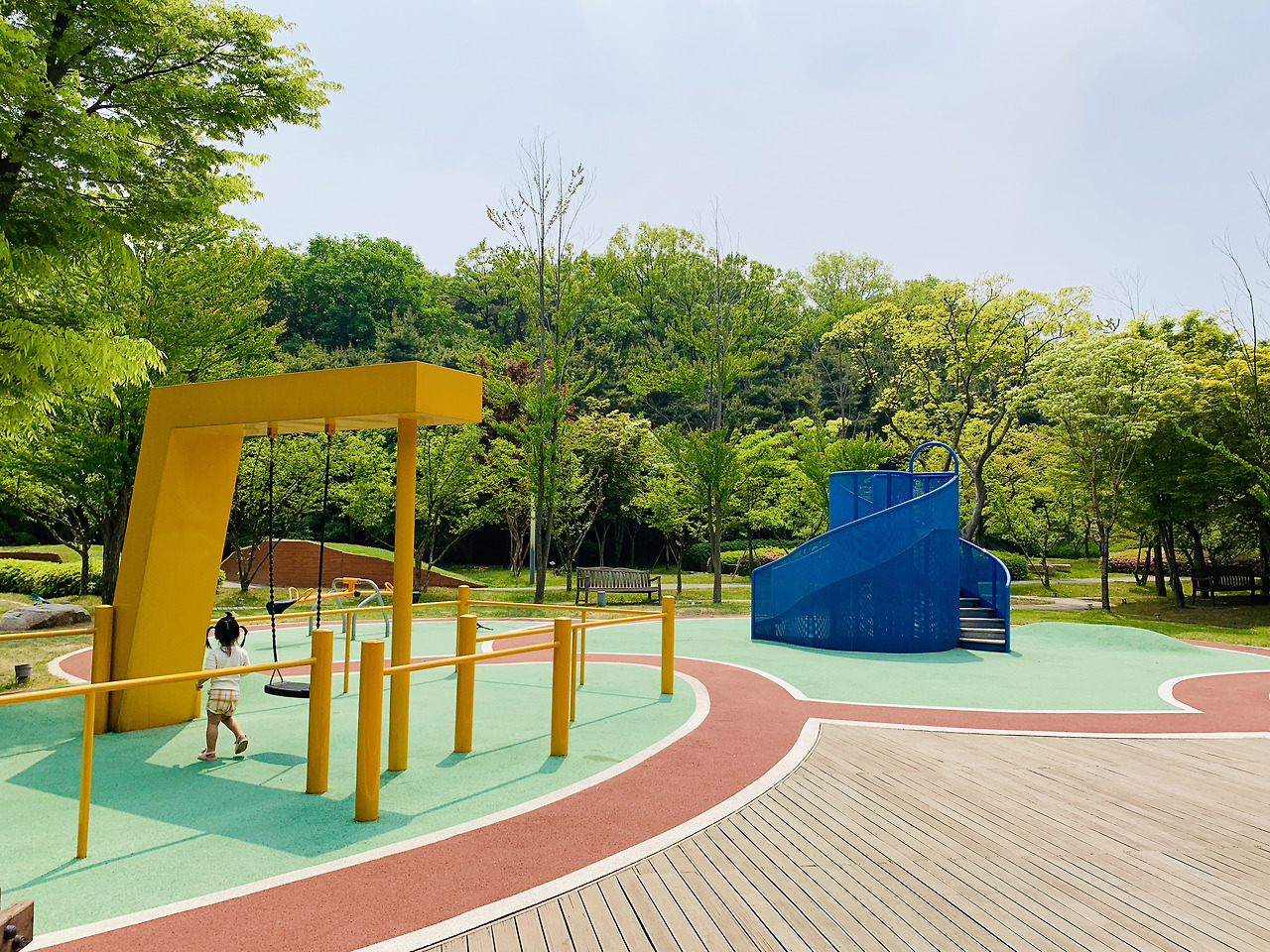 - 잘 가꿔진 산책로와 그 한가운데 있는 야외 놀이터