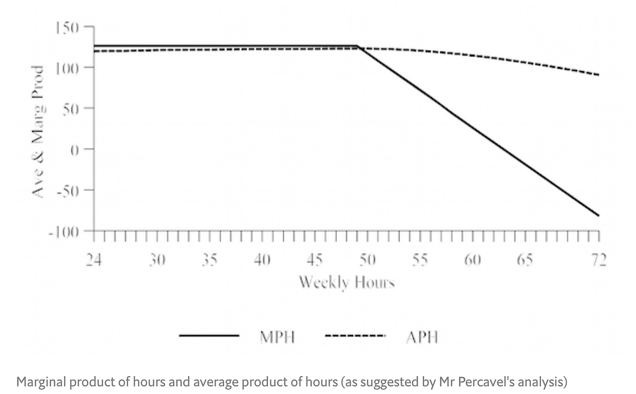 첫째, 생산성. 근무시간을 단축하는 것이 기업의 생산성을 갉아먹는다고 주장하는 많은 이들에게. 수십 년간의 조사 결과에 더해서 최근 스탠퍼드 연구팀은 근무 시간과 생산성을 개인과 많은 기업 차원에서 연구한 결과 결론을 내렸다. 근로 시간이 길어질수록 생산성을 낮춘다.