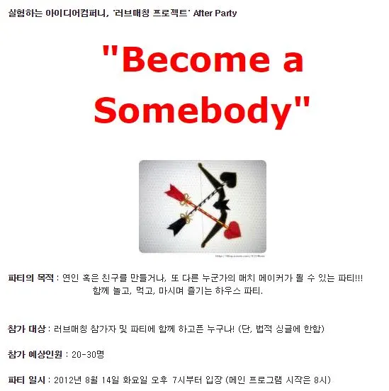 단 한 커플도 인연이 닿진 않았지만 '어떤 사람들이 이 프로젝트에 함께 했을까?' 궁금한 사람들이 모여 파티를 하는 걸로 러브 매칭 프로젝트는 끝이 났습니다.