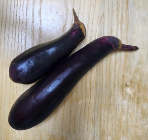 "제가 키운 가지예요. 그냥 생으로 먹어도 맛있어요" 라며 하나는 어제 땄어야 했는데 하루 만에 이렇게 커버렸다며 토실하게 큰 가지를 두 개를 주셨습니다. 마치 통통한 펭귄 같기도 한 가지 모양이 귀엽습니다.