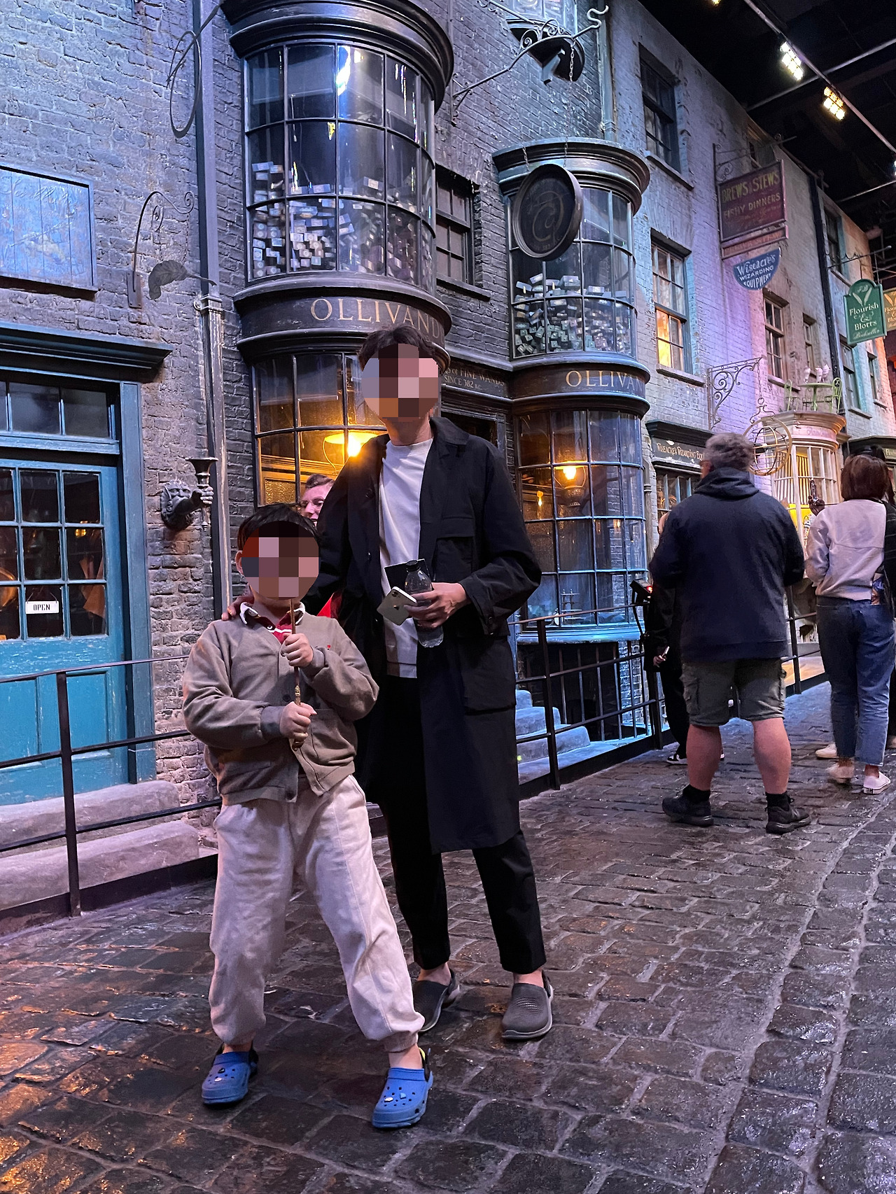 남편은 대견한 아이에게 선물을 사주겠다며 기념품샵에서 뭔가를 고르라고 했다. 좀처럼 즉흥적으로 잘 안 사주는 남편인데, 아이의 가상한 노력에는 보상을 해주고 싶었나 보다. 여기는 해리포터 덕후들이 정말 많아서 아이들 뿐 아니라 어른들도 신이 나 구경하는 모습들이 인상적이었다. 기념품샵에는 아이들뿐만 아니라 어른들을 위한 기념품까지 다양하게 있었다. 영화 세트장을 방불케 할 정도로 해리포터 코스튬을 입은 사람들이 지척의 여기저기서 마법의 주문을 외운다. 아이는 한치의 망설임도 없이 마법의 지팡이를 골랐다. 웅가르디움 레비오사! 하나하나 살펴보고 고심해서 고른 예쁘고 비싸고 (쓸데없는) 지팡이. 남편도 하나 사서 아이와 마법 대결을 하겠다는 것을 말리며, 공원에서 나무 막대기를 주워다주마 약속했다. 여보, 당신은 해리포터 다 안읽었잖아요. 아들들을 다 키우려면 아직 멀었구나 싶다.