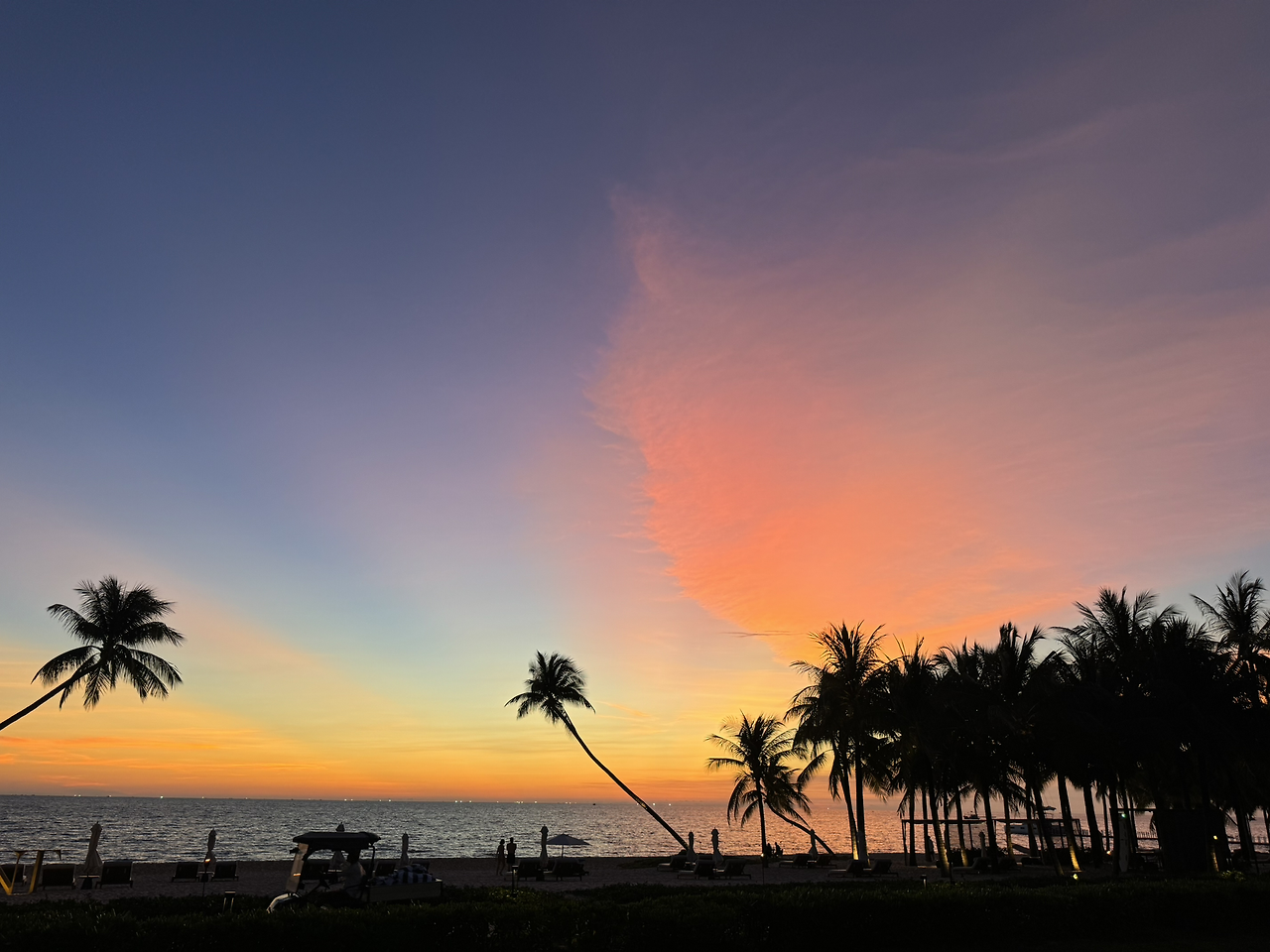 저녁노을을 본 적이 있는가. 언젠가 서해바다를 갔을 때 저녁노을을 보는데, 해가 서서히 지지 않고 갑자기 뿅 하고 떨어지듯 사라져서 놀란 적이 있다. 해가 지는 건 순식간이었기에, 그 순간을 계속 바라보고 기다리고 있지 않으면 놓칠 수 있는 것이었다.(해돋이도 마찬가지다. 해가 순식간에 뿅 하고 뜬다.) 그 순간이 뭐라고 그렇게 바라만 보고 있어도 좋을까. 그러다 해가 진 저녁 6시 반 경이 되면, 하늘은 작정하고 물든다. 여기까지 와서 노을 구경 안 할래? 말하는 듯, 색색의 아름다운 빛깔을 뽐낸다. 한줄기, 두 줄기. 구름 한 점 없이 새파랬던 하늘이 어느새 노을빛으로 바뀌는 과정은 경이롭다. 주홍빛의 낙조를 바라보고 있으면 자연의 아름다움에 넋이 나가 아무 생각이 없어진다. 그저 해가 다 지고 어둠이 드리울 때까지 바라만 보고 있게 된다. 아무 말하지 않아도 좋다. 한 폭의 그림을 액자에 담아 감상하듯 보고만 있어도 마음이 충만해진다. 푸꾸옥이 베트남의 몰디브라는 말을 듣고 픽하고 비웃었는데, 노을을 보고 왠지 인정하게 된다.