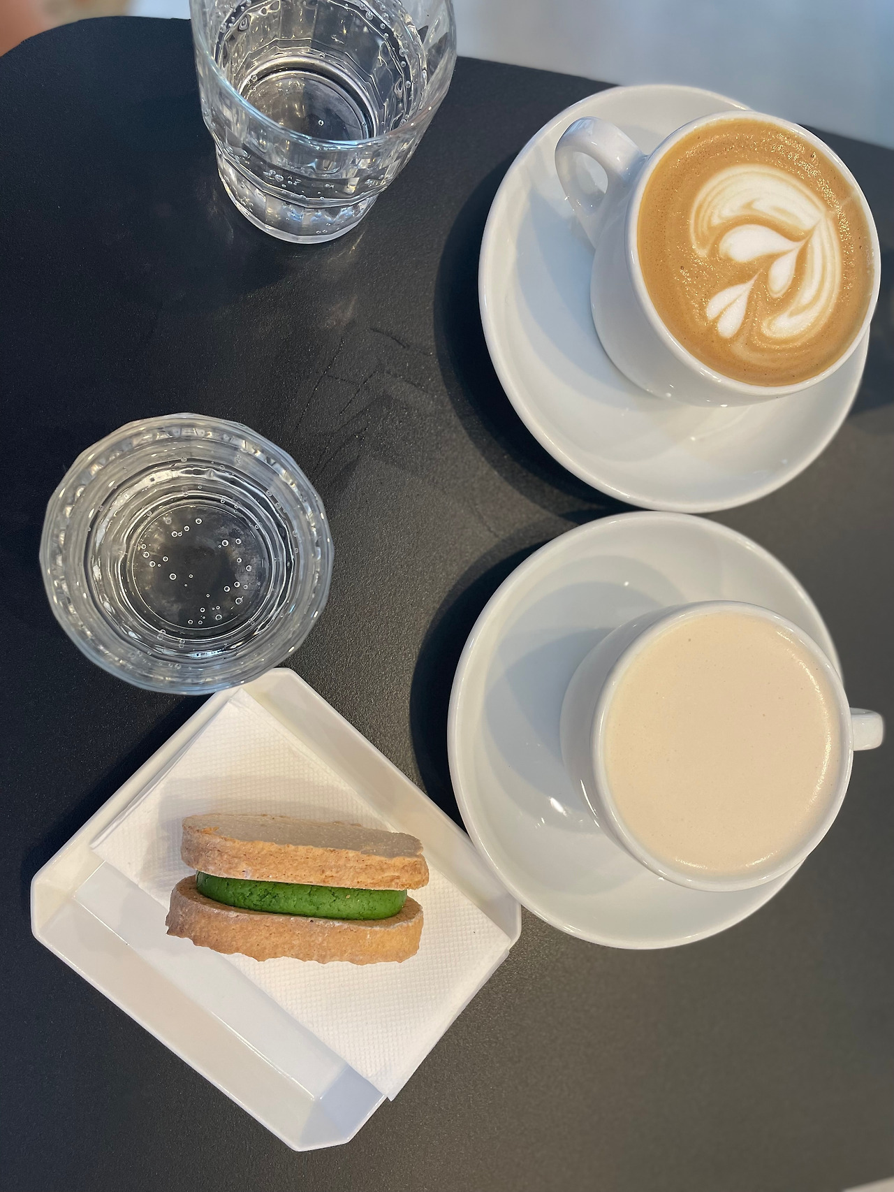 호주의 카페가 맘에 들었던 부분은 디카페인 커피가 어딜 가나 있다는 점. 그리고 라테를 주로 마시는 사람들이 선택할 수 있는 우유 종류가 다양하다는 점이다. 락토프리 밀크, 오트밀크, 아몬드밀크 등. 나 같은 과민성 대장증후군에게도 디카페인, 오트밀크로 만든 라테류라면 지속적으로 편안한 장 상태를 선사해 준다. 매번 화장실을 찾아 헤매는 불안한 눈길을 보이지 않아도 되는 것이다. 여기서 나의 베스트 커피는 디카페인 오트밀크로 만든 플랫화이트다. 한국에서는 맛이 너무 진해서 사약을 들이켜는 듯한 느낌에 플랫화이트는 잘 안 시킨다. 그런데 여기서 한입 마신 플랫화이트는 지금껏 접해보지 못했던 신세계다. 쓴맛이 전혀 느껴지지 않는 실키하고도 부드러운 목 넘김. 어릴 때 떠먹는 젤리를 처음 먹을 때처럼 기분이 좋아지는 맛이었다.