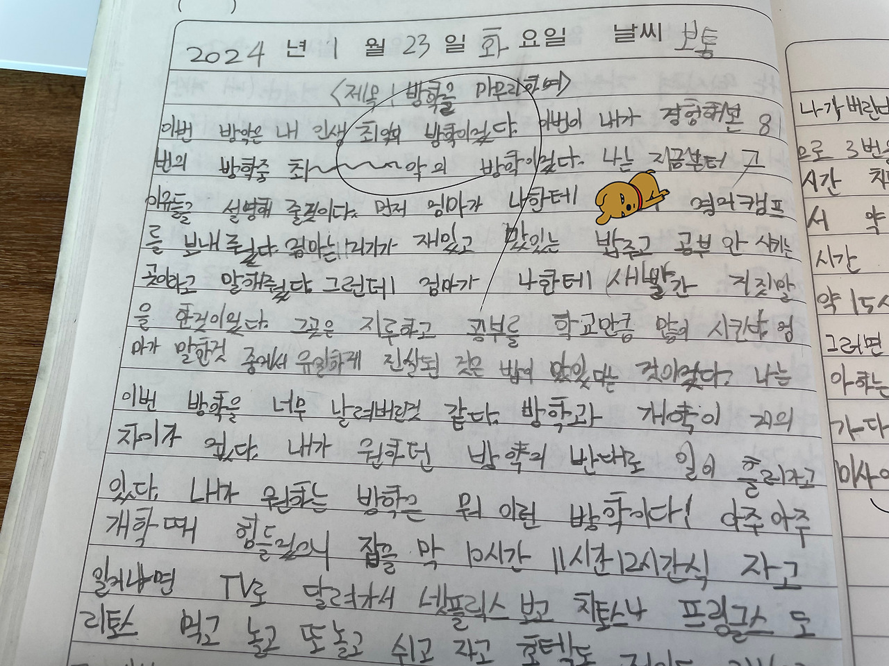 이렇게 아이의 방학은 끝이 났다. 내 한 몸 편해보고자 밥 주는 방학캠프를 보냈는데, 아이가 힘들었다고 하니 내 마음도 덩달아 불편해진다. 점심 한 끼 더하는 게 뭐 그리 큰 일이라고. 방학캠프에서 부대찌개며 마라탕도 먹고 온다는 데 힘들면 그냥 한 끼는 사 먹이면 될 일인데, 몇 번이나 신호를 보냈던 아이의 말을 대수롭지 않게 넘기고 마음을 살피지 못했다는 후회가 뒤늦게 밀려온다. 개학이랑 다를 바가 없는 방학, 소중한 한 번의 방학을 날린 억울함과 서러움을 몰라준 엄마가 얼마나 원망스러웠을까. 아이 키운 지 벌써 10년 차인데, 시간이 얼마나 지나야 아이 마음을 먼저 헤아려주는 엄마가 될 수 있을까.