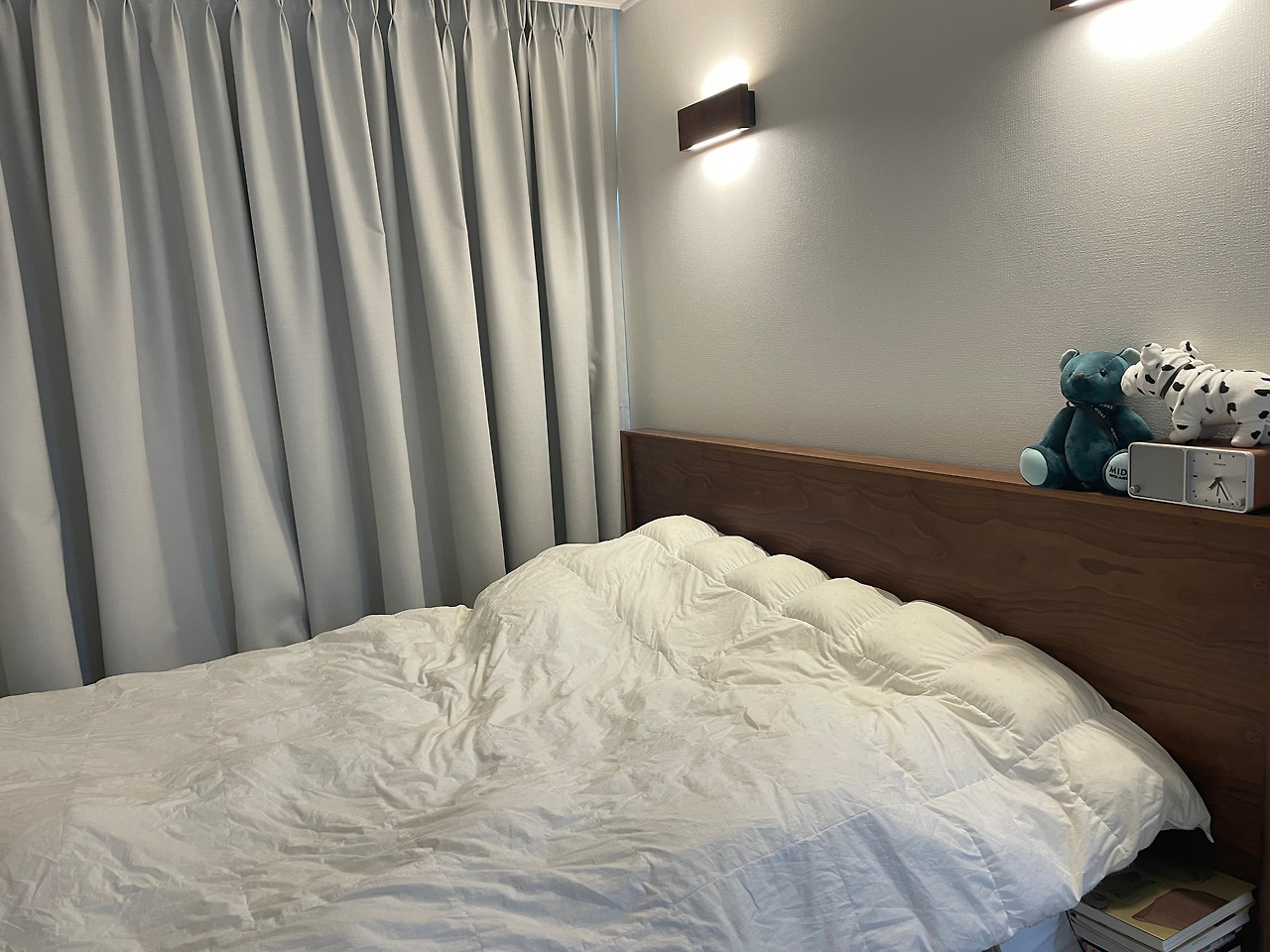 그러다 그런 생각이 들었다. 왜 나는 항상 손님들을 위해서만 집을 정리하고 있지? 내 집에 사는 나를, 나의 가족들을 위해서도 정리할 수 있는 거 아냐? 실제로 침대 정리를 시작해 보니 2-3분 남짓이었고, 이 3분의 시간이 나로 하여금 나와 가족을 위하고 아낀다는 느낌이 들게 했다. 그러고 나서 맑은 정신으로 침대에서 잠깐 명상하듯 멍 때리는 시간을 갖는다. 그다음, 평소 하던 대로 아이를 꼭 안아주고 미지근한 물을 조금 마신다. <침대정리+멍 때리기+아이를 꼭 안아주기+미지근한 물 마시기>의 루틴이 생겼다.