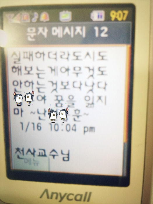 그녀와의 대화를 복기하다가, 20년 전 내가 제일 존경했던 교수님께서 내게 보내주셨던 문자가 떠올라 울컥했다. 사진첩을 뒤져보니, 옛날 핸드폰에서 캡처한 문자가 아직 남아있다. 1년간 학교를 쉬고, 하고 싶었던 거 다 해보고 여행도 다녀오겠다고 했을 때, 여기저기 교수님들께 불려 가 혼이 나면서도 눈하나 깜짝하지 않았던 나를 울린 건, 내 지도교수님의 문자 한 통이었다. 유일하게 믿어주신 나의 교수님. 제일 존경했던 교수님. 부모님한테조차 혼나던 나에게 용기를 주셨던 교수님.
