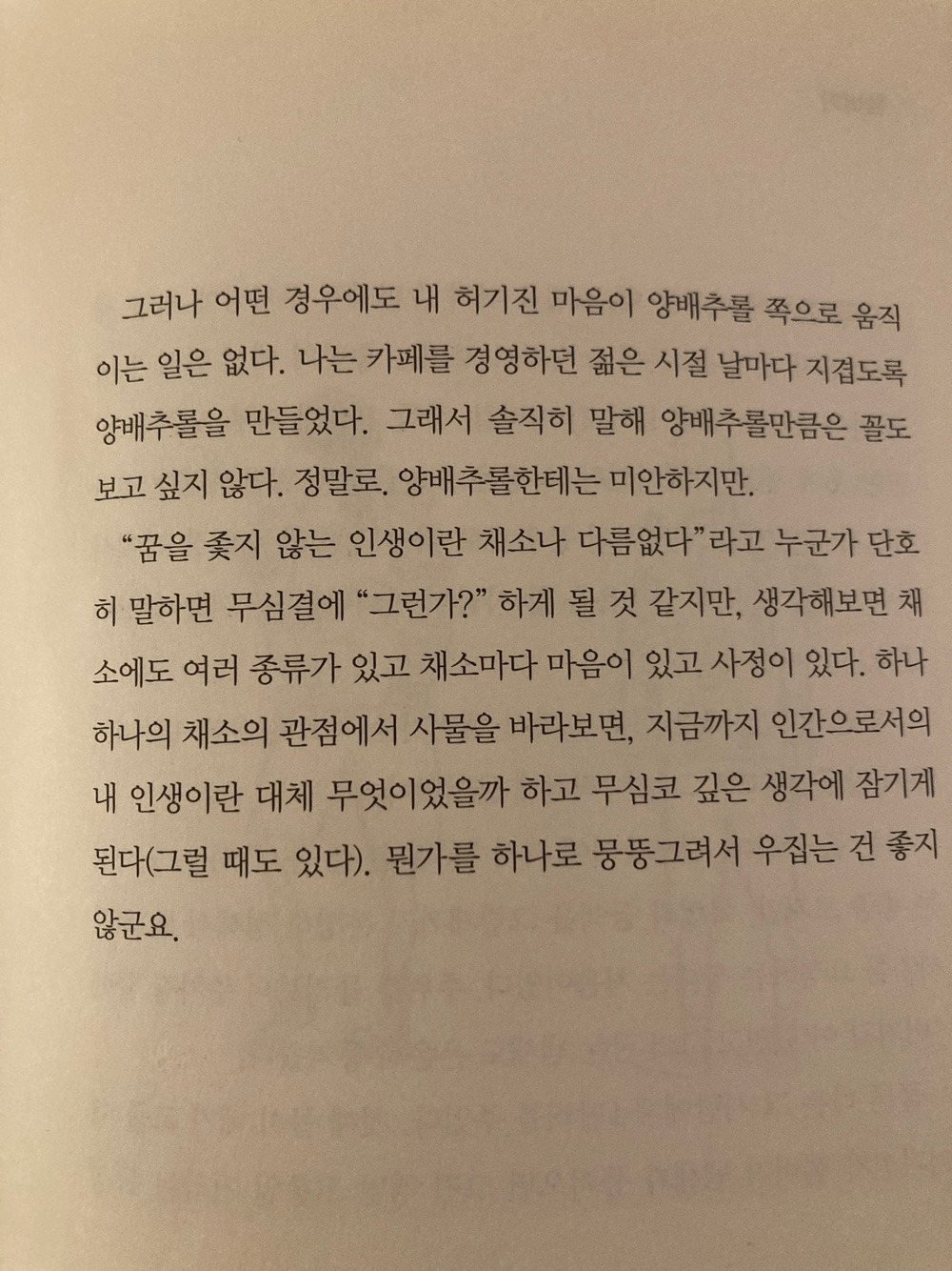 채소의 기분이라니. 하루키는 다정하고 사랑스러운 사람. 그래서 많은 사람들이 아끼는 것이겠지.