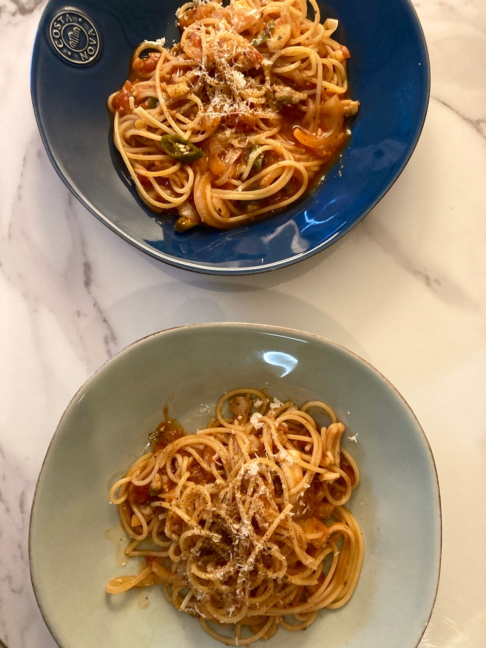 무라카미 하루키에게서 영감 받은 해물 가득한 토마토 파스타. 벼르고 벼르다가 실행하여 구현함.