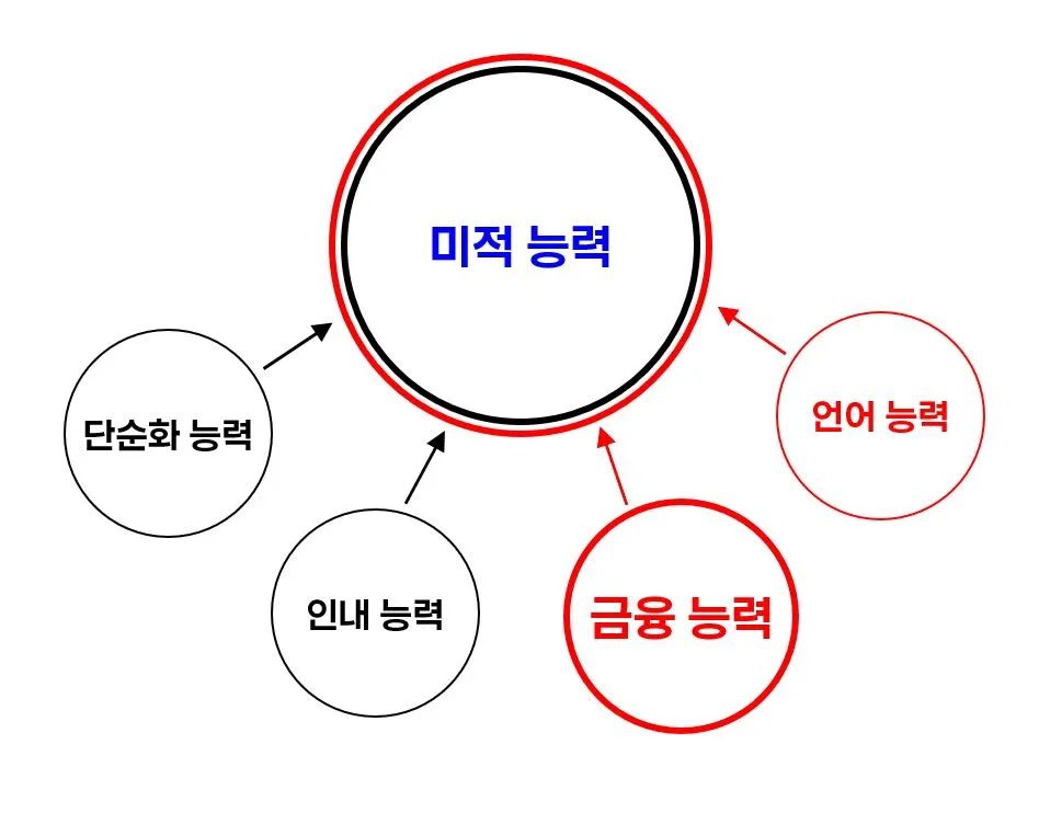 1. 구성요소: 미적능력(프라임), 단순화 능력, 인내심 능력/ 잠재되어 있는 금융능력, 언어능력