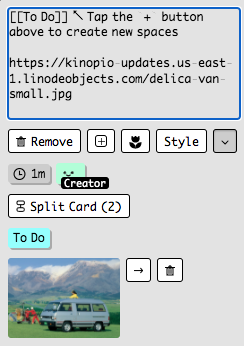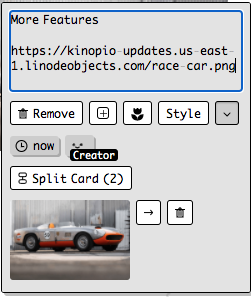 카드에는 텍스트나 이미지, 영상 등의 정보들을 하나의 카드에 복수개를 담을 수 있는데요. 필요에 따라 분할도 가능합니다. 텍스트 입력 칸에 “줄 바꿈”을 하면 해당 줄을 기준으로 미디어 단위로 분할(Split)이 가능합니다. 아래 화면에서 “Split card”를 클릭하면 자동으로 2개의 카드로 나뉩니다. 다만, 일단 분할된 카드를 하나로 합치는 기능은 제공되지 않네요. 하나의 카드로 만들려면, 카드 내 정보들을 복사해서 다른 카드에 입력해야 하는 번거로움은 있습니다.