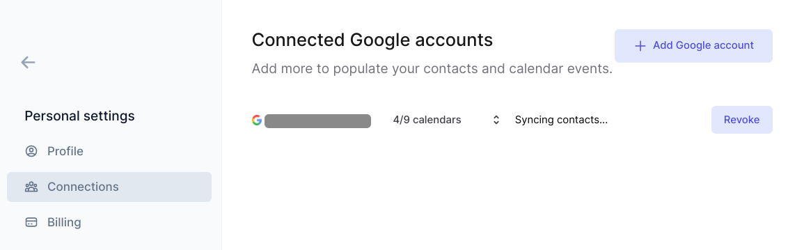 Reflect에서는 외부 캘린더와 연락처(Contact) 추가가 가능한데요. Google 계정을 연동하면, 사용 가능한 캘린더중에서 선택적으로 필요한 캘린더만 추가할 수 있습니다. Google 캘린더의 일정이 일자별로 Reflect에 자동으로 추가됩니다. Google 캘린더의 일정을 변경하면 바로 Reflect 회의칸의 제목이 변경되어 좋네요. 다만, Reflect에서의 미팅 일정 관련 내용 변경은 Google Calendar에 반영되지 않으니, 이 점 참고하세요.