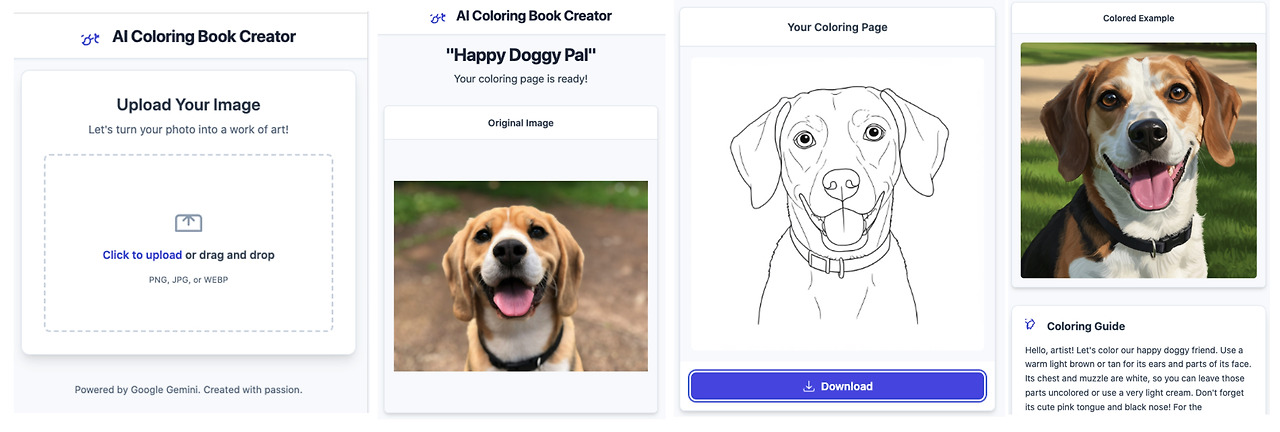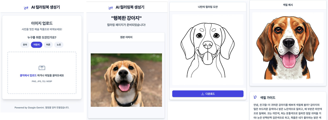 이제 집에 있는 가족 사진이든, 반려동물 사진이든, 좋아하는 풍경 사진이든 무엇이든 Google Build Apps를 활용해서 나만의 컬러링북으로 만들 수 있게 된 거죠. 특별한 추억을 색칠하며 다시 한번 되새길 수 있다니, 생각만 해도 설레지 않나요?