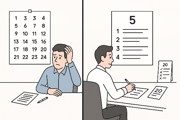 물론 작성한 리스트가 혼자만의 다짐으로만 남으면 지속되기 어렵습니다. 책상 앞에 리스트를 붙여두거나 동료들과 공유하면서 스스로 경계를 지킬 수 있도록 하는 것이 좋습니다. 예를 들어, 이메일 확인 시간을 정해두거나, 안건 없는 회의 참석을 거절하고, 불필요한 멀티태스킹을 줄이는 등 구체적인 행동 지침을 만들어 두면 효과가 훨씬 커집니다. 업무와 삶의 환경은 늘 변하기 마련입니다. 따라서 한 번 작성한 “하지 않을 리스트”라고 해서 영원히 유효하지는 않습니다. 분기마다 다시 점검하면서 새롭게 추가하거나 제거할 필요가 있습니다. 지금은 하지 않아야 할 일이지만, 특정 프로젝트가 끝난 뒤에는 다시 해야 할 일이 될 수도 있으니까요. “하지 않을 리스트”는 “할 일 리스트”와 함께 사용할 때 그 효과가 배가됩니다. 두 리스트가 서로를 보완하면서, 우리는 “무엇을 해야 할지”와 동시에 “무엇을 하지 않아야 할지”를 더욱 분명하게 알 수 있죠. 곰곰이 생각해 보면, 결국 자신만의 우선순위를 제대로 세우는 것, 그것이 하루를 낭비 없이 더 생산적으로 살아가는 가장 확실한 길이 아닐까요?