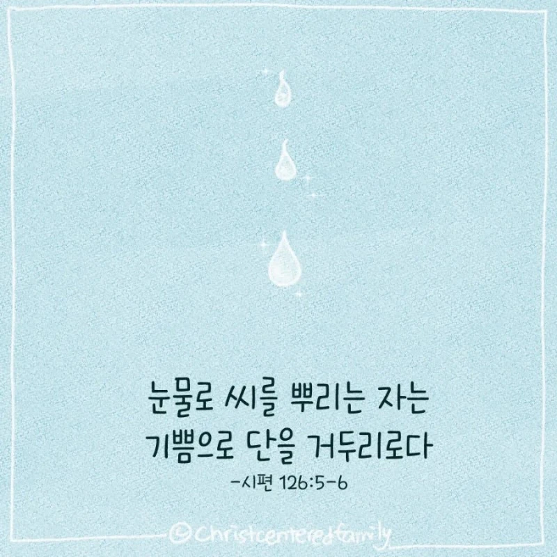 눈물을 흘리며 씨를 뿌리는 자는 기쁨으로 거두리로다. 울며 씨를 뿌리러 나가는 자는 반드시 기쁨으로 그 곡식 단을 가지고 돌아오리로다. (시편 126:5-6)