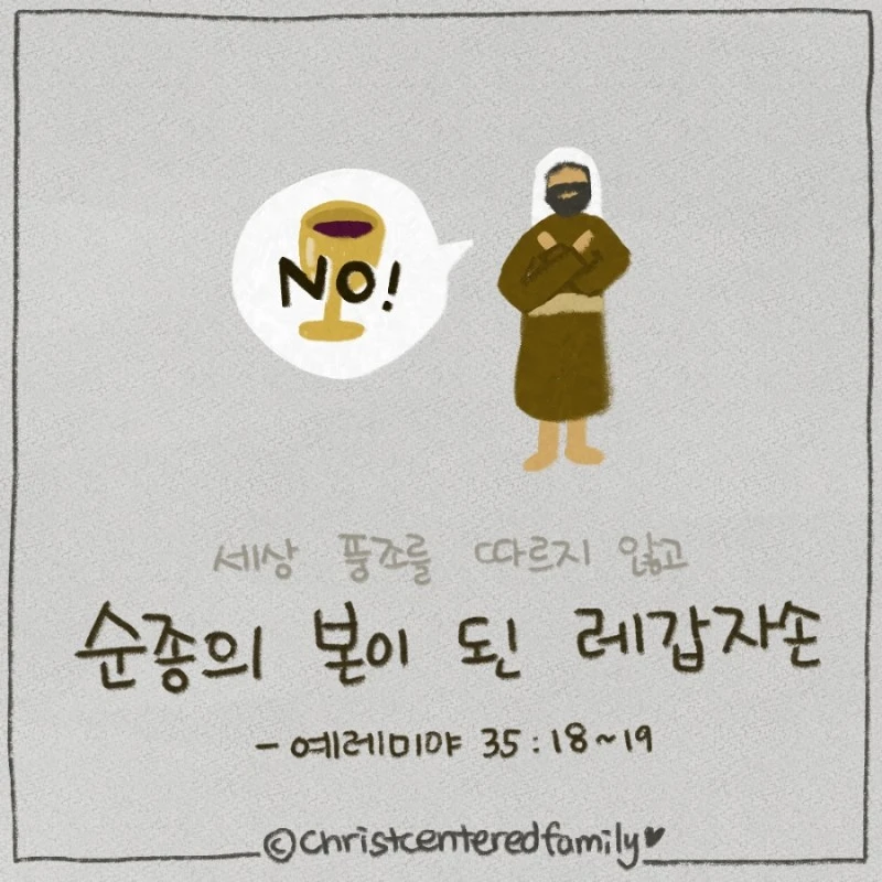 왕이신 하나님, 000(이)가 레갑 자손과 같이 이 세대 가운데 순종의 본이 되게 하소서. 세상이 아무리 악함과 불순종을 향하여 치닫고 죄에 타협하며 거룩의 기준이 무뎌질지라도, 레갑 자손과 같이 말씀 가운데 듣고 배운대로 하나님께 순종하여 영원히 하나님 앞에 서는 거룩한 인생되게 하소서.