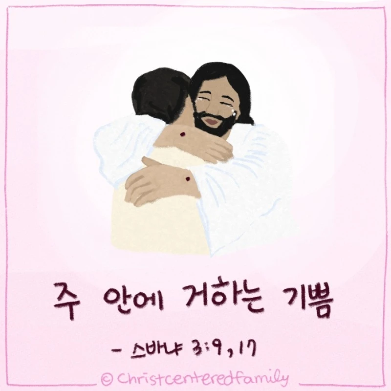 너의 하나님 여호와가 너의 가운데에 계시니 그는 구원을 베푸실 전능자이시라 그가 너로 말미암아 기쁨을 이기지 못하시며 너를 잠잠히 사랑하시며 너로 말미암아 즐거이 부르며 기뻐하시리라 하리라(스바냐 3:17, 개역개정)