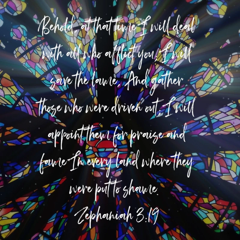Behold, at that time I will deal with all who afflict you; I will save the lame, And gather those who were driven out; I will appoint them for praise and fame In every land where they were put to shame.(Zephaniah 3:19, NKJV)