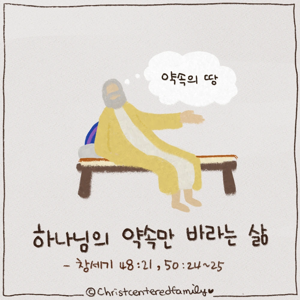 이스라엘과 요셉은 당시 이집트의 안락한 환경이 주는 편안함을 넘어 하나님의 약속을 계속해서 마음에 품고, 그 약속의 성취를 믿음으로 바라보는 인생을 보냈음을 봅니다. 우리의 인생이 이들과도 같기를 원합니다. 그들이 삶에서 하나님의 살아계심을 경험하고, 하나님의 언약을 믿음으로 그 언약이 성취되기를 간절히 기다렸듯이, 우리의 삶에서도 참으로 하나님의 약속을 바라보며, 그 약속만 믿고 따라가는 인생되기를 간절히 소망합니다.
