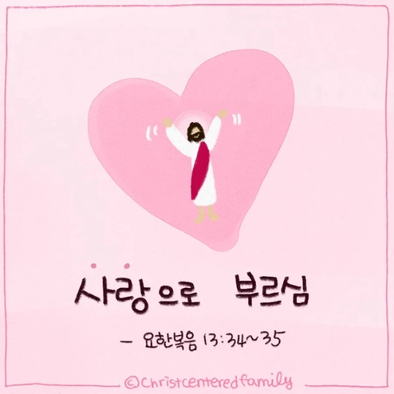 A new commandment I give to you, that you love one another; as I have loved you, that you also love one another. By this all will know that you are My disciples, if you have love for one another.”(John 13:34-35, NKJV) . . <오늘의 묵상> 예수님께서 본을 보이시며 사랑하신 것 같이, 우리도 서로 사랑하라 명하신 그 말씀을 묵상합니다. 오늘 우리가 사랑하되, 예수님이 사랑하셨던 것 처럼 그렇게 사랑하며 살길 소망합니다. 세상의 기준대로 하는 사랑이 아니라, 계산적이거나 내 감정을 따르는 사랑이 아니라, 그리스도 예수의 마음으로 사랑하여, 진정으로 그리스도 예수의 제자된 삶을 살길 소망합니다. . . <오늘의 기도> 사랑의 하나님, 000(이)가 예수님의 명령을 따라서, 예수님께서 사랑하신 것 같이 우리 주위에 만나게 하신 모든 이들을 사랑하며 살아가게 하소서. 관계의 주인되시는 하나님, 000(이)에게 사랑을 가르쳐 주시고, 사랑을 풍성하게 부어주소서. 그래서 진짜 예수님처럼 사랑하는 당신의 제자되게 하소서.