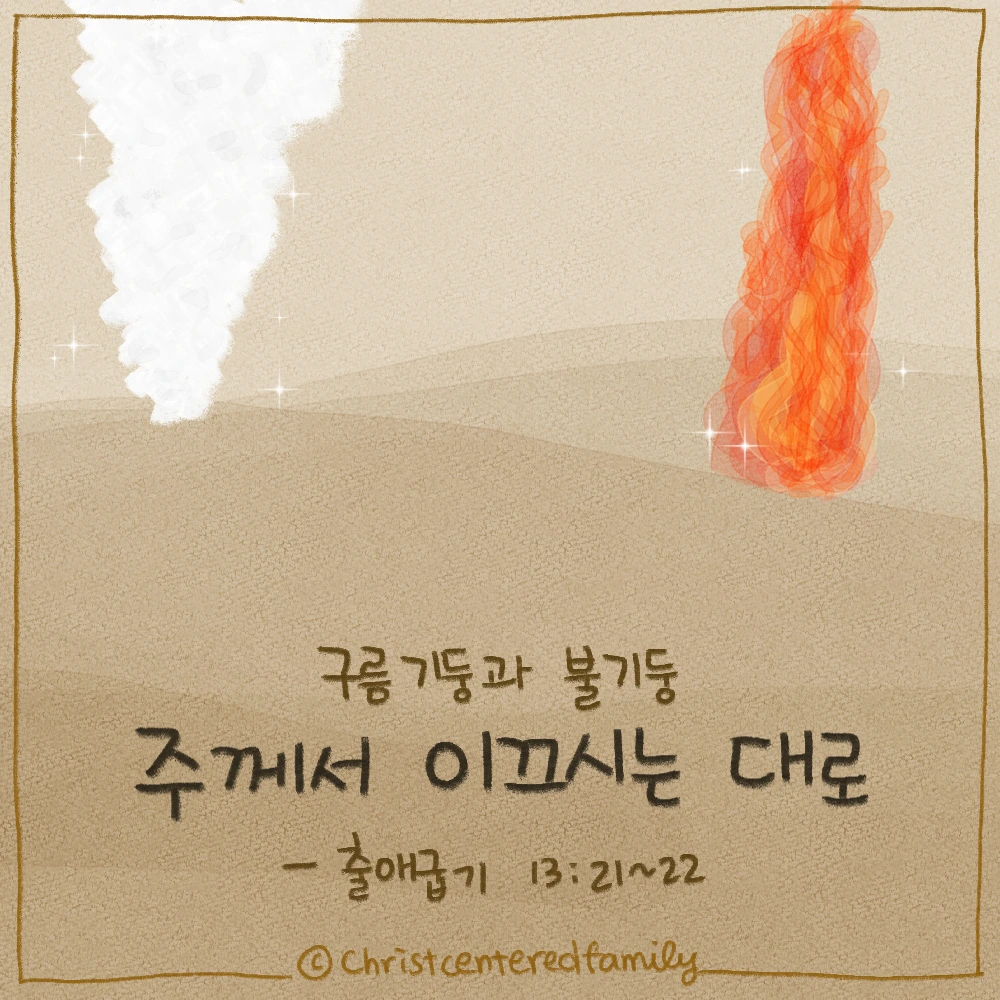 여호와께서 그들 앞에서 가시며 낮에는 구름 기둥으로 그들의 길을 인도하시고 밤에는 불 기둥을 그들에게 비추사 낮이나 밤이나 진행하게 하시니, 낮에는 구름 기둥, 밤에는 불 기둥이 백성 앞에서 떠나지 아니하니라(출애굽기 13:21~22, 개역개정)