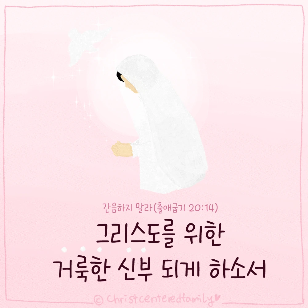 "간음하지 말라"하신 말씀을 묵상합니다. 예수 그리스도께서는 사람이 마음에 은밀히 품는 욕망만으로도 간음하는 것이 되기에 주의하라 하셨으며(마태복음 5:27~28), 신약에서는 우리의 몸을 그리스도께서 거하시기에 합당한 거룩한 성전(고린도전서 3:16)이 되게 하라 명하고 있습니다. 우리를 창조하신 하나님께서는 우리의 육신과 생각이 참으로 그리스도의 신부가 되기에 합당한 거룩함을 지키기를 원하심을 묵상합니다.