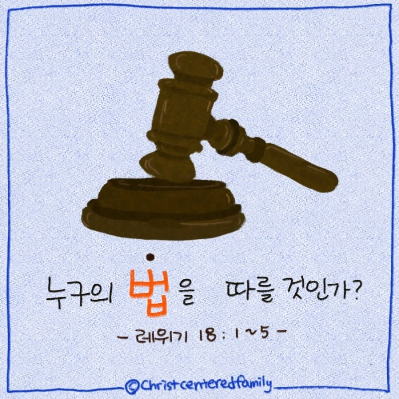 우리를 구원하신 하나님, 000가(우리 가정이) 언제나 하나님의 법만을 따르게 하소서. 세상의 다른 어떤 문화도, 가치관도, 다른 어느 것도 아닌 오직 하나님께서 주신 계명과 말씀만을 지키는 매일이길 원합니다.