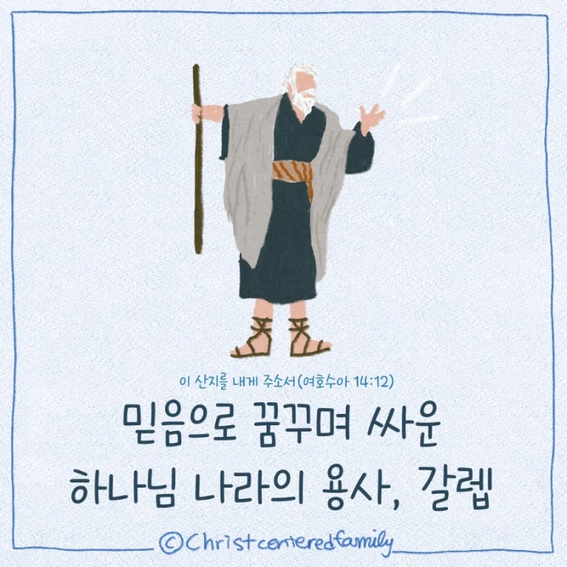 (Joshua 14:11-12, NKJV) . . <오늘의 묵상> 평생을 믿음으로 약속의 땅을 바라보며 믿음 위에 굳게 선 용사가 되어 호흡이 다하는 날까지 싸우며 나아간 갈렙의 삶을 묵상합니다. 오늘 우리의 삶 또한 갈렙과 같은 믿음의 삶이기를 원합니다. 오직 다른 것이 아닌, 하나님의 약속의 말씀, 그 분의 약속된 나라만을 바라는 삶이기를 원합니다. 그 나라를 향해 또한 온 마음과 생각을 집중하여 온 힘을 다해 나아가는 그러한 군사와 같은 삶이기를 원합니다. 주위의 모두가 두려워하며 피하더라도, 주위의 모두가 어리석다할지라도, 믿음위에 굳게 서서 하나님이 명하신 길로 나아가는 그런 충성된 용사이기를 소망합니다. 그래서 마지막 때에 참으로 하나님 나라를 유업으로 받기를, 오직 하나님께 기억되고 인정받는 그러한 거룩한 하나님 나라의 용사이고 싶습니다. . . <오늘의 기도> 만군의 하나님, 000가(우리 가정이) 갈렙과 같이 믿음으로 사는 하나님 나라의 용사 되게 하소서. 아무리 어렵고 두려운 상황에서도 오직 하나님의 약속을 믿음으로 바라며, 하나님 나라를 꿈꾸며 날마다 영적 전쟁에서 승리를 거두는 인생되게 하소서.
