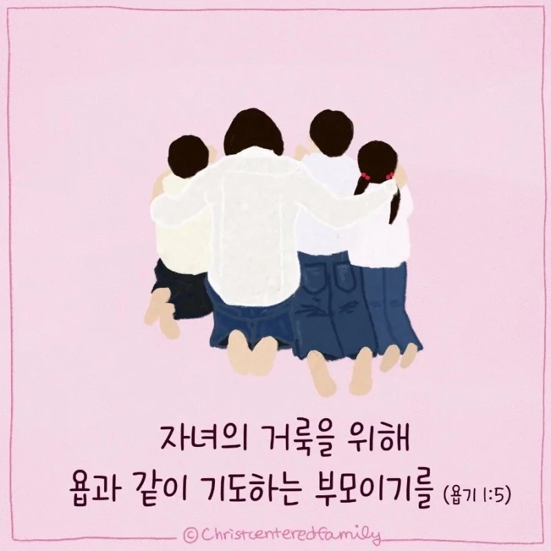 So it was, when the days of feasting had run their course, that Job would send and sanctify them, and he would rise early in the morning and offer burnt offerings according to the number of them all. For Job said, “It may be that my sons have sinned and cursed God in their hearts.” Thus Job did regularly. (Job 1:5, NKJV) . . <오늘의 묵상> 자녀들을 향한 욥의 모습을 묵상합니다. 욥은 자녀들이 즐거운 잔치 자리에서 혹여라도 마음 속으로라도 하나님을 욕되게 하는 범죄함을 저질렀을까 싶어 그들을 불러 함께 회개와 속죄의 제사를 올렸습니다. 자녀들의 영적 거룩함, 그들의 심령의 거룩함을 위해 기도하며 제사를 올렸던 욥과 같은 부모되기를 원합니다. 오늘 우리도 가정에서 늘 영적 거룩함을 위하여, 마음에서라도 하나님께 범죄하지 않기를 기도로 돕는 부모되기를 원합니다. . . <오늘의 기도> 거룩하신 하나님, 000가(우리 가정이) 마음의 깊은 곳, 무의식에서라도 하나님을 욕되게 하지 않기를 원합니다. 그 모든 삶에서, 모든 행동과 생각, 감정, 마음과 영혼에서 늘 거룩함을 지키게 하소서. 000를 그리스도의 보혈로 덮으사 그 삶에 늘 거룩이 이뤄지게 하소서.