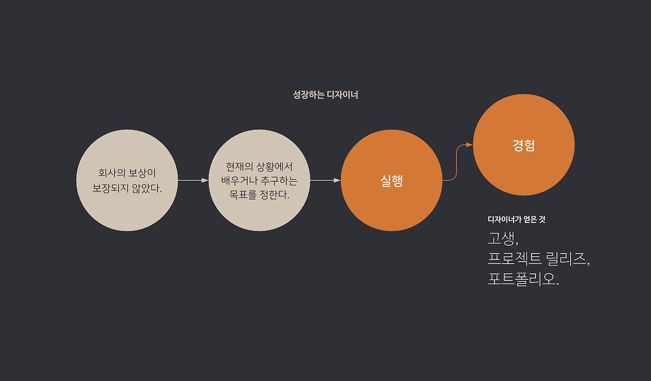 성장하는 디자이너는 자신만의 어젠다를 갖고 있다. 어떤 일을 하던 배우는 것이 있다. 많은 경험을 쌓기 때문에 고생은 많이 하지만, 프로젝트를 경험할 때마다 태도와 능력이 확실하게 성장한다.