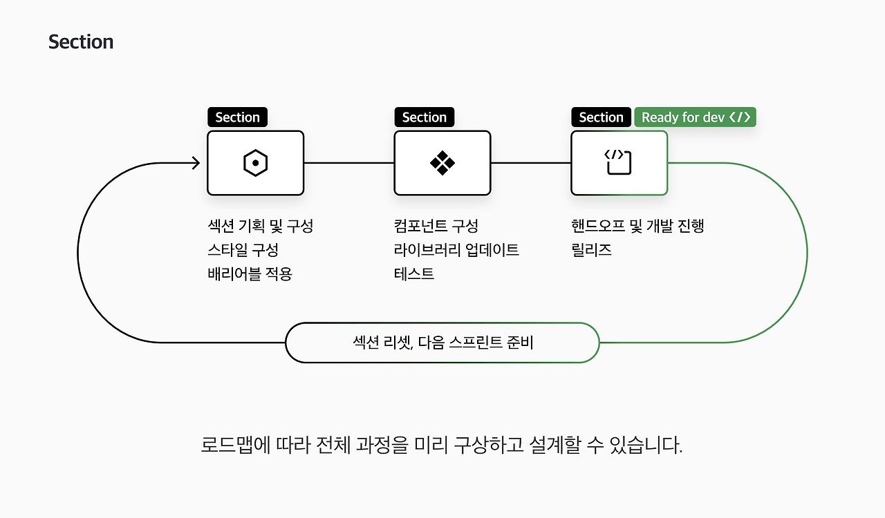 피그마의 디자인 - 반복 - 공유라는 생각이 다시 팀에 영향을 준다면, 적절한 방식으로 작업 영역의 부담이 줄어들면서 특정 부분으로 집중될 것으로 예상됩니다.