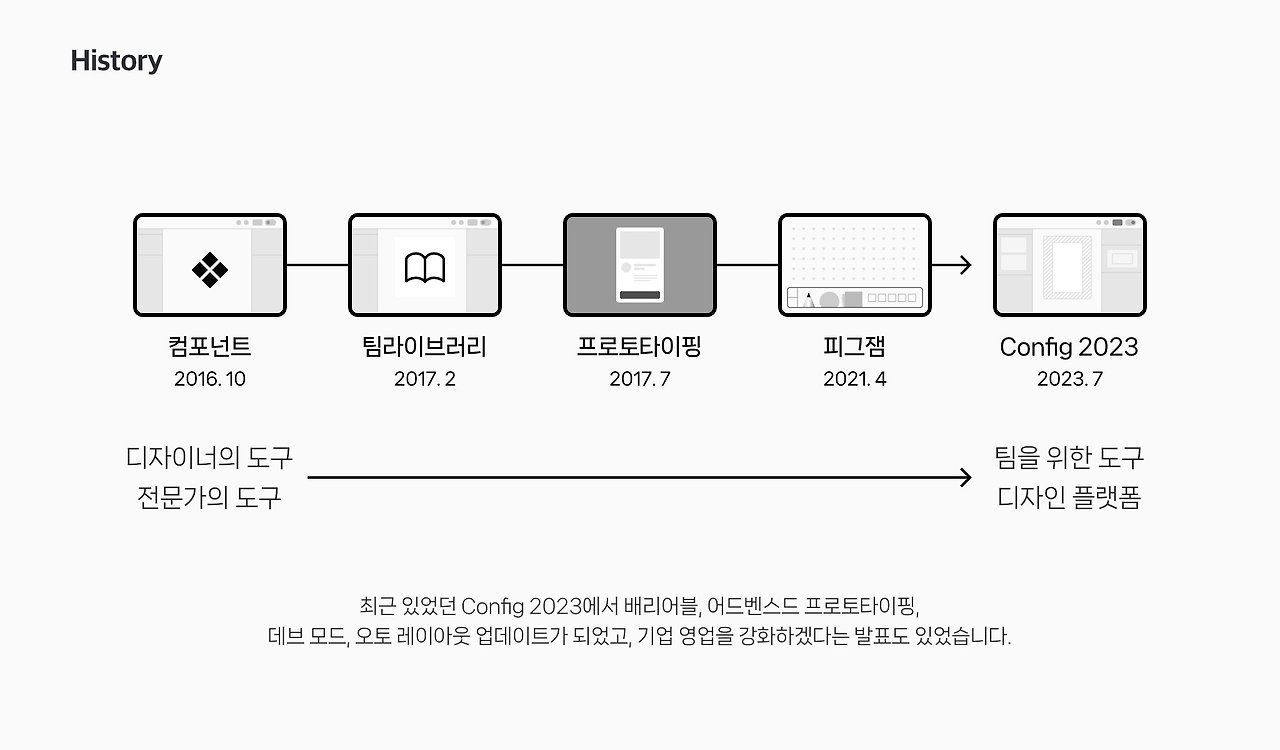 2023년 10월 기준의 피그마는 초기 모습에 비해서 많은 기능이 추가되었고, 디자인 영역을 넘어서 팀을 위한 도구로 발전했습니다. 20세기에는 프로세스가 도구를 선택했는데, 이젠 도구가 프로세스를 선택하는 것처럼 보입니다.