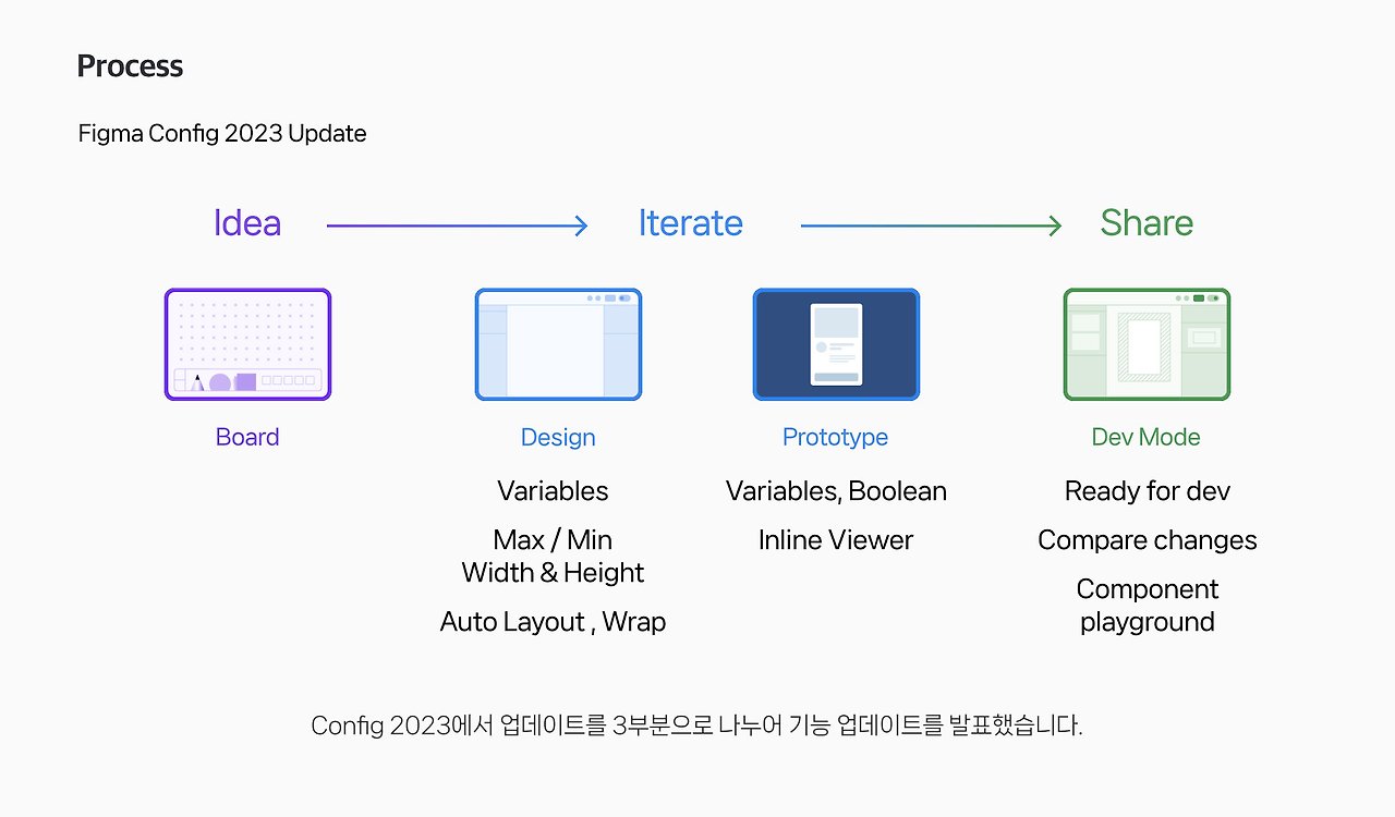 가장 큰 변화는 2023년에 있었던 Config 2023으로 가장 변화가 큰 업데이트였다고 생각합니다. 협업 디자인 툴로 시작한 피그마는 이제 팀이 문제를 이해하고, 대안을 탐색하며, 해결책을 만드는 것을 돕는 end-to-end 디자인 플랫폼이 되었습니다.