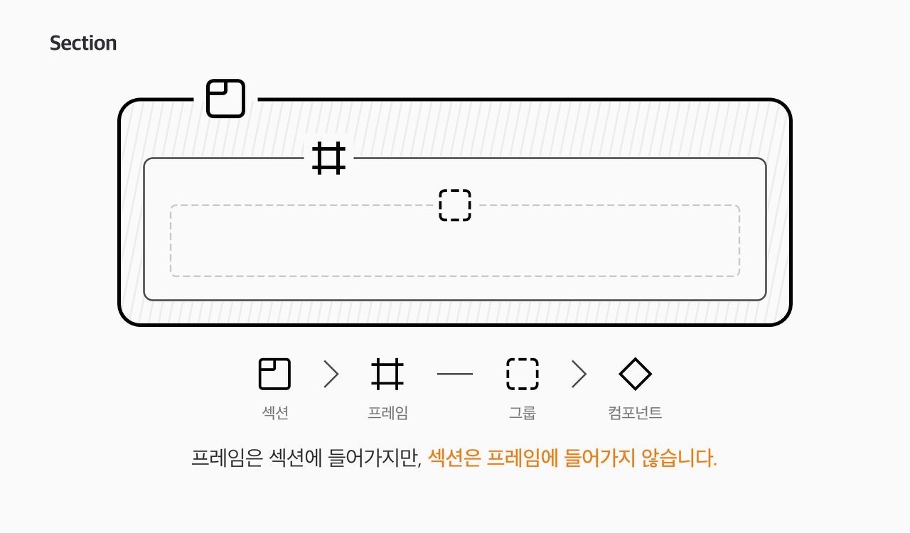 피그마의 컨테이너에는 섹션과 프레임이 있습니다.