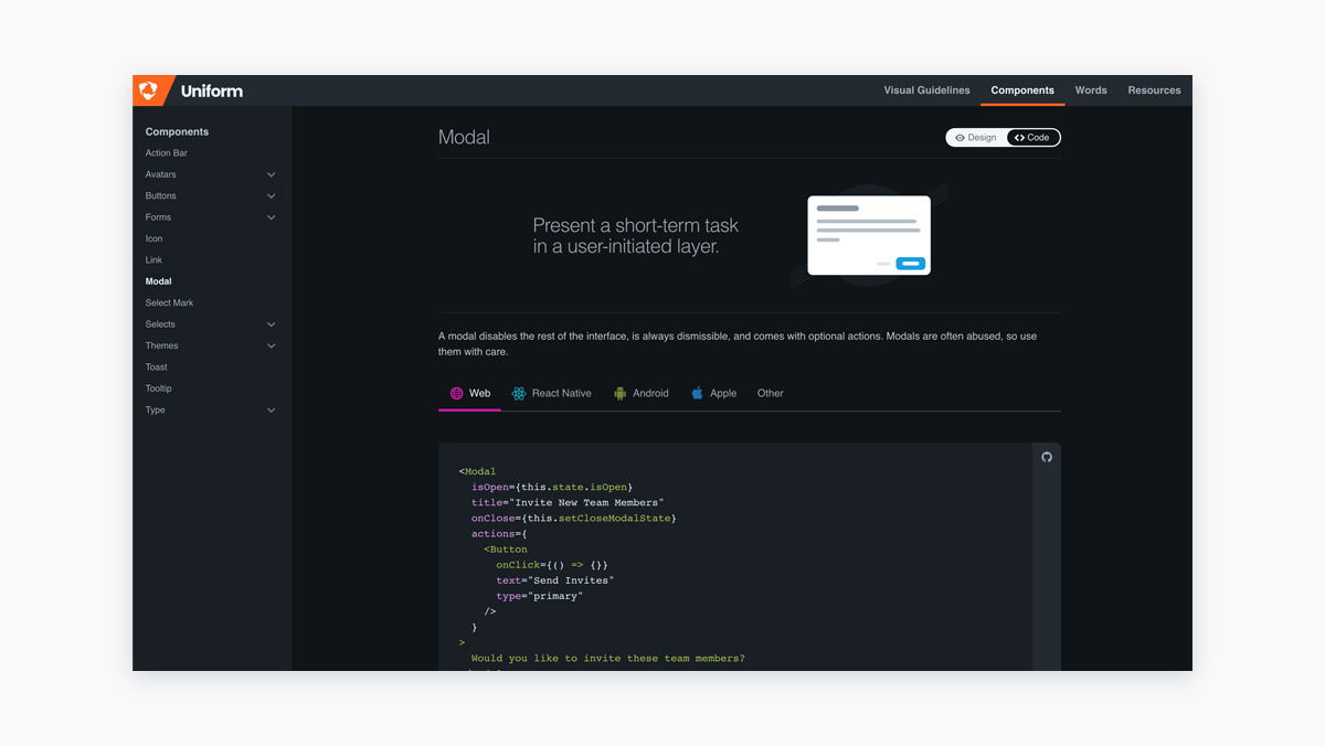디자인을 하기 위해 방법과 가이드, 참고 자료로 다양한 디자인 시스템(design system)이 공개되고 있다. 어떤 디자인 시스템은 명료함을 최고의 가치로 둔다. 이런 시스템에서는 명확한 인식을 위해 비주얼 요소들과 컴포넌트들의 관계가 필요하다. 다른 시스템은 접근성에 가치를 둔다. 그럴 경우, 장애가 있는 사람들을 위한 폭넓은 접근성과 대체 콘텐츠, 색상과 명도 처리가 필요하다. 제품을 사용하는 사람은 외국인이 될 수도 있고, 제품의 생태계에 참여하고 싶은 사람도 있을 것이다. 디자인 시스템은 목적에 따라 콘텐츠를 해석하는 것부터, 비주얼, 사용자 피드백 방법까지 다양한 것들을 포함하고 있고, 웹을 통해 누구나 접근할 수 있다.