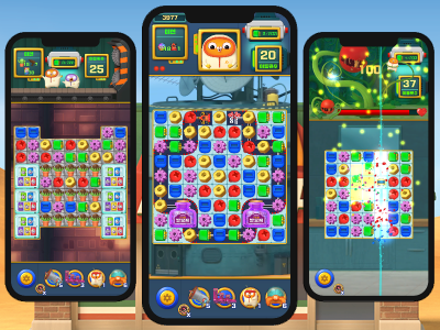 이 게임은 단순한 퍼즐 게임이 아닙니다. 과학실을 배경으로 한 실험실 콘셉트에, 캐주얼 애니메이션 특유의 감성과 유머를 더했습니다. 기존 매치3 게임의 틀은 유지하되, 소재와 연출, 사운드까지 완전히 새로운 결을 추구했습니다.
